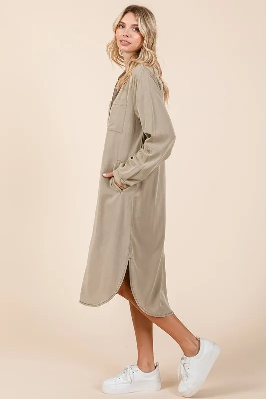 Button Down Long Sleeve Shirt Dress – Hazelnut