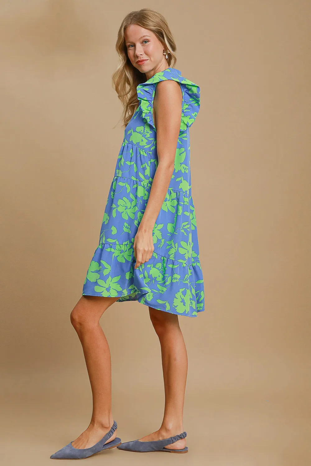 Full Size Floral Print Ruffle Cap Sleeve Tiered Dress Plus Size – Cerulean