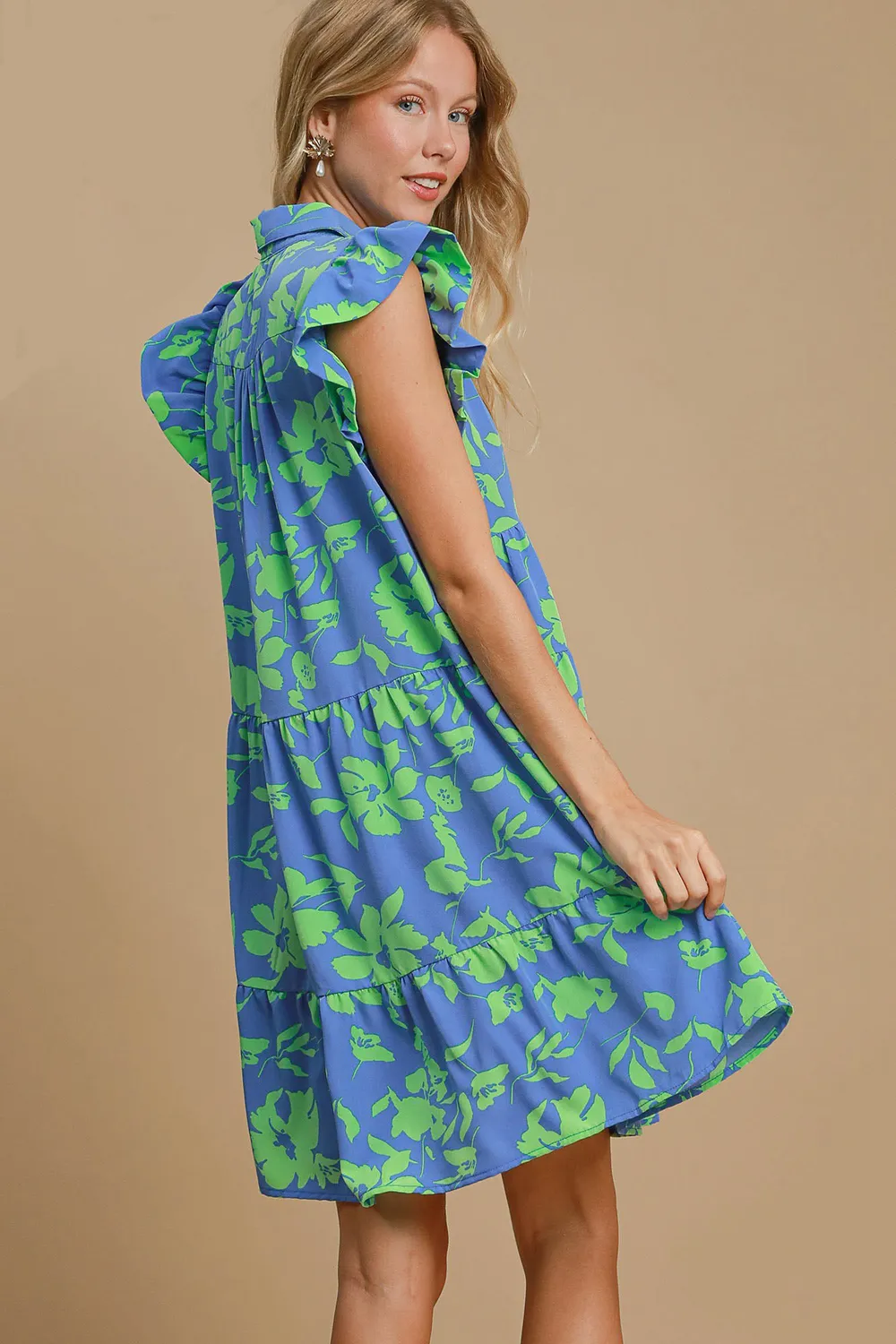 The Floral Print Ruffle Cap Sleeve Tiered Dress is a charming and feminine piece featuring a floral print and ruffle design. The cap sleeves add a touch of sweetness to the dress, while the tiered layers create a flowy and elegant silhouette. Perfect for summer days or special occasions, this dress exudes a romantic and delicate vibe. The floral print adds a playful and stylish element, making this dress a versatile and charming option for your wardrobe.