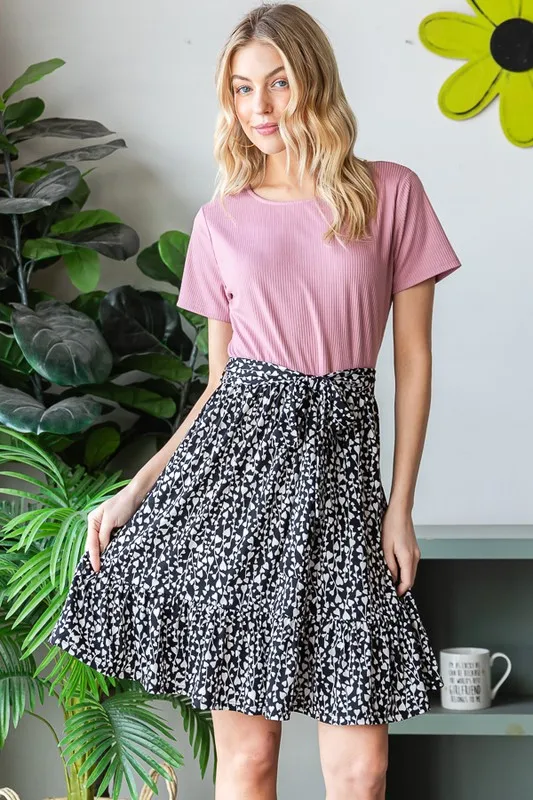 Full Size Short Sleeve Solid And Animal Print Mini Dress Plus Size – Mauve