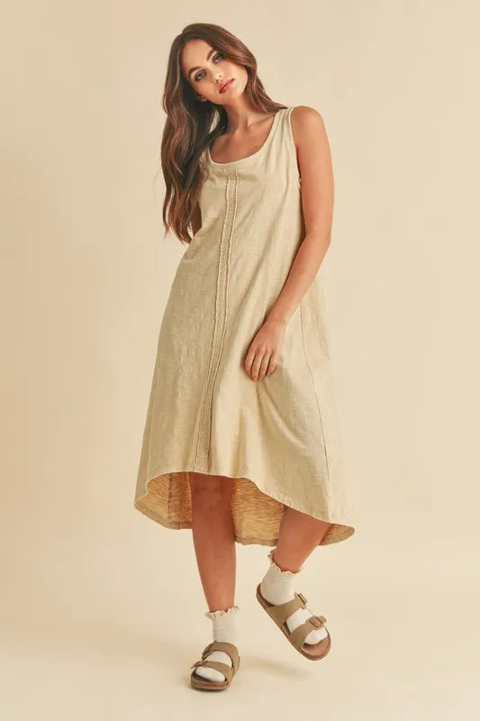 High-Low Hem Scoop Neck Midi Tank Dress – Oatmeal