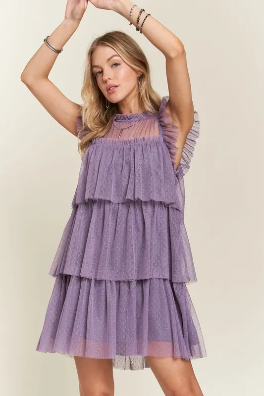 Layered Ruffled Cap Sleeve Mesh Dress – Mauve
