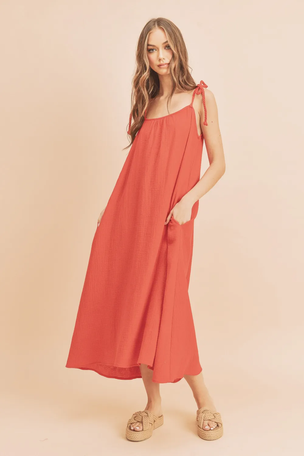 Midi Cami Dress with Pockets – Coral