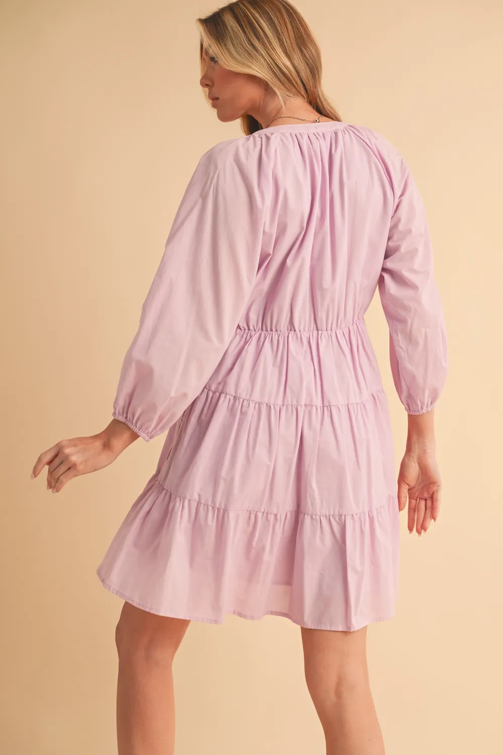Notched Balloon Sleeve Tiered Mini Dress – Lilac