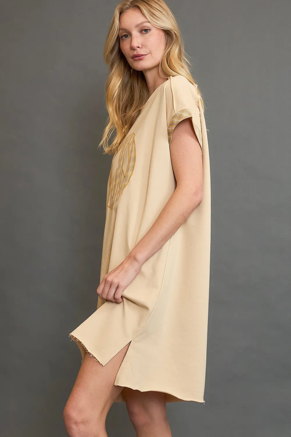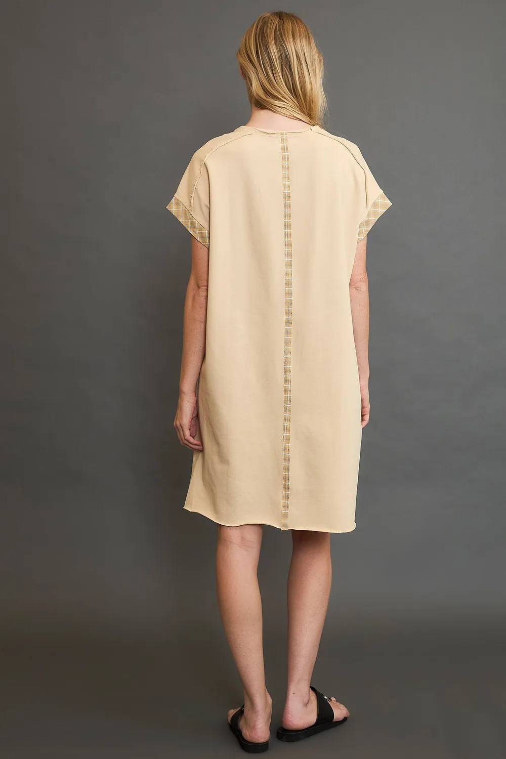 Peace Plaid Applique Short Sleeve Mini Dress – Pastel Yellow