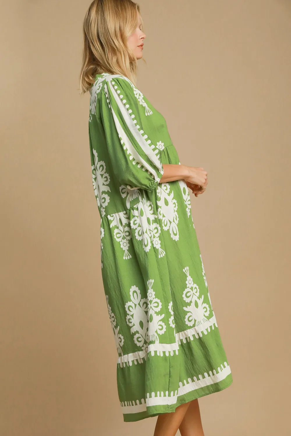 The Printed Notched Midi Dress features a stylish notched neckline and a flattering midi length. This dress is adorned with a chic print that adds a pop of interest to the design. Perfect for various occasions, from casual outings to semi-formal events, this versatile dress strikes the balance between classic elegance and modern style.