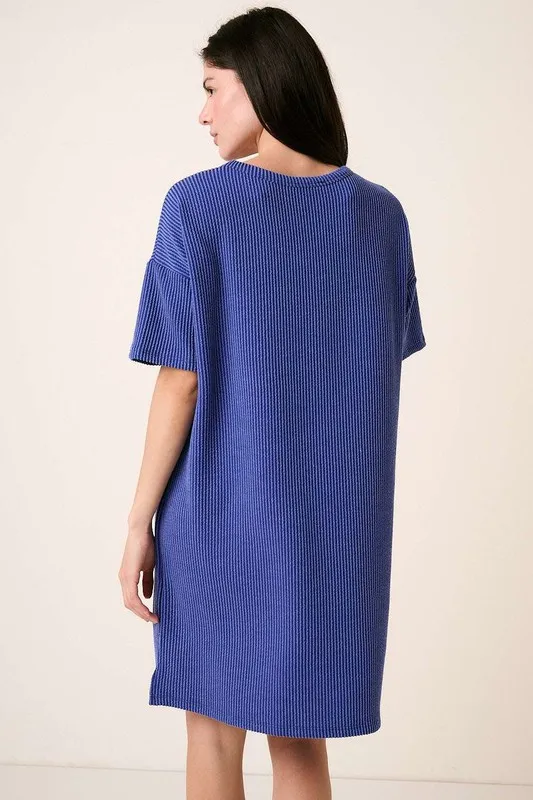 Urban Rib Knit Short Sleeve Tee Dress – Royal Blue