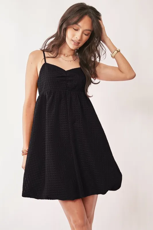 Textured Sweetheart Neckline Bubble Hem Dress – Black