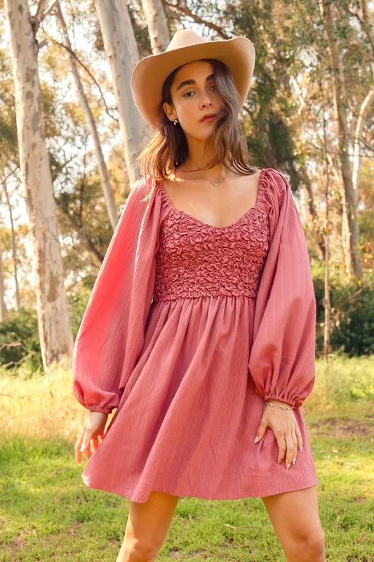 Textured Woven Smocked Dress – Mauve