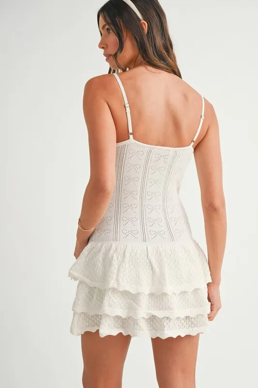 Bow Pointelle Knit Ruffle Mini Dress – Off White