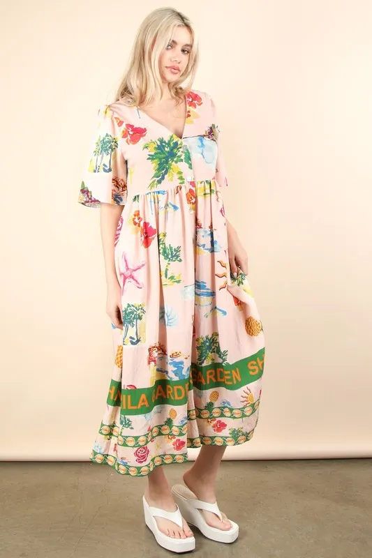 Button Down Printed Midi Dress – Blush Mix