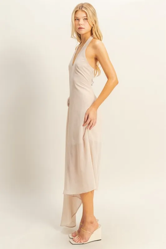 Chiffon Halter Asymmetrical Hem Dress – Champagne