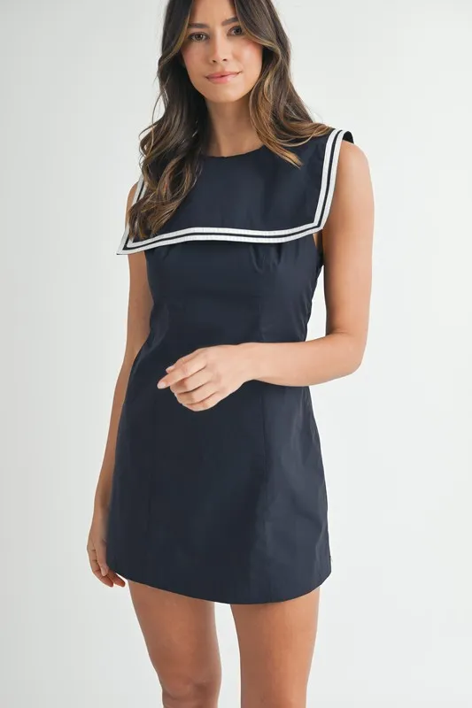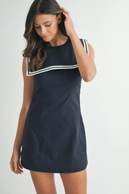 Contrast Piping Square Sailor Collar Mini Dress – Navy