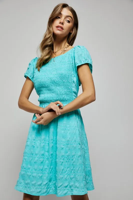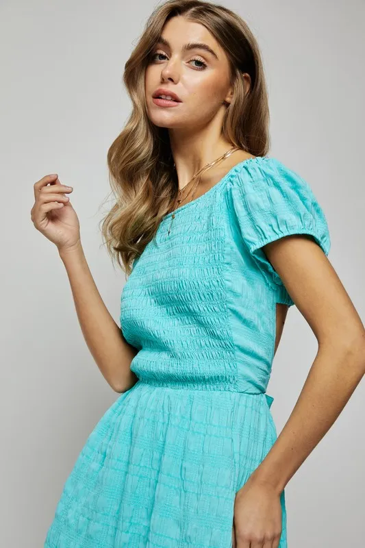Crossed Back Short Sleeve Dress with Pockets – Aqua Blue