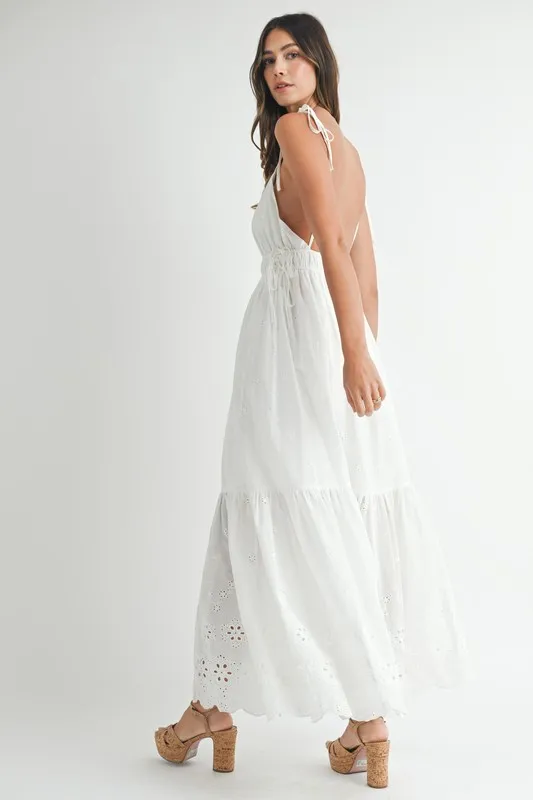 Eyelet Lace Maxi Dress with Side Strap Details – Off White