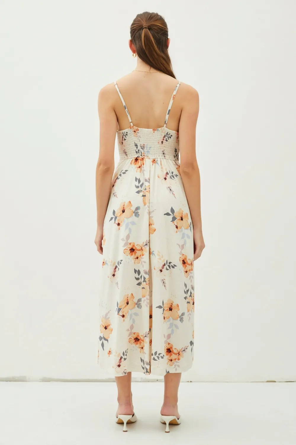 Floral Button Down Cami Midi Dress – Peach Hibiscus