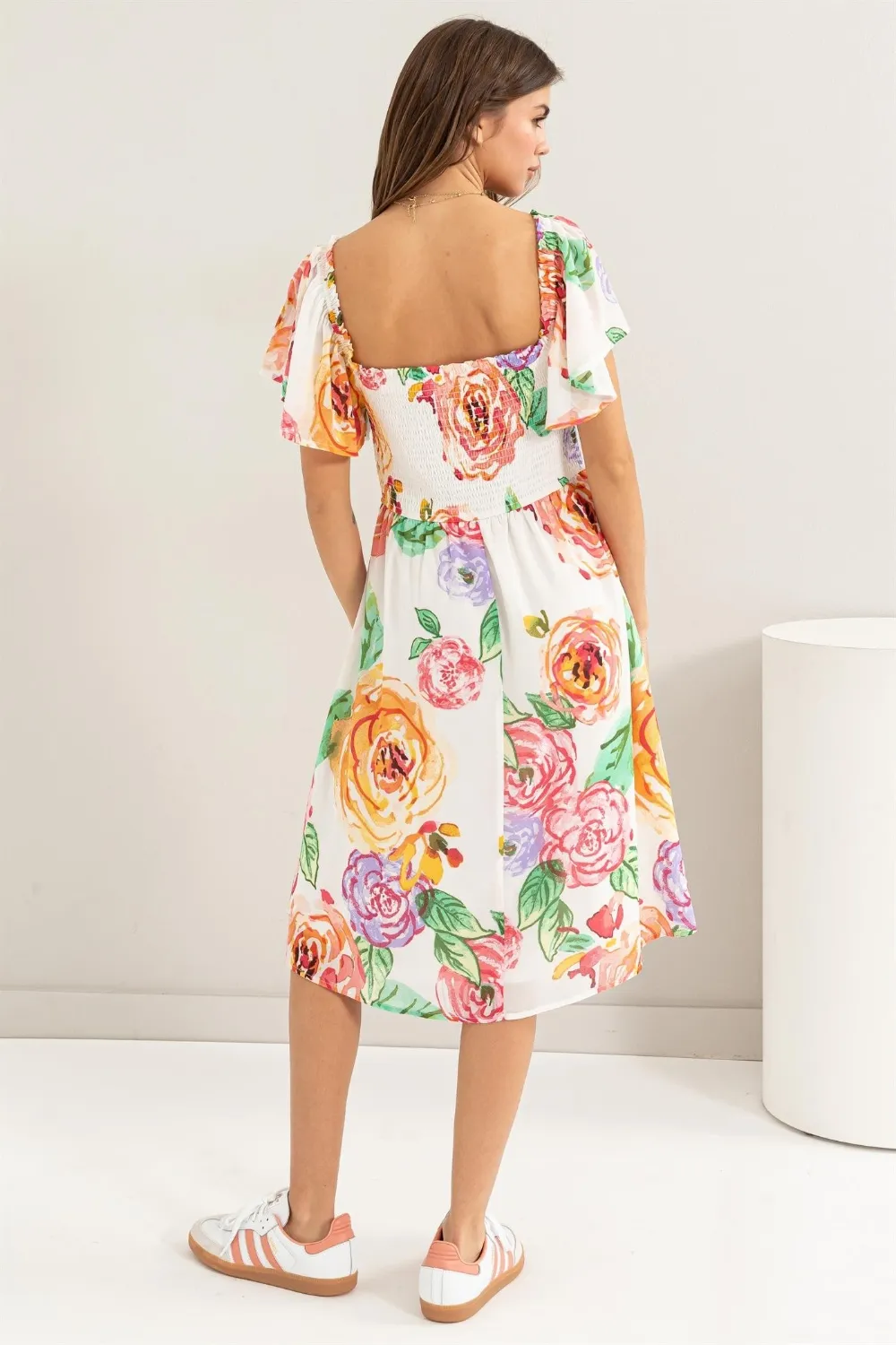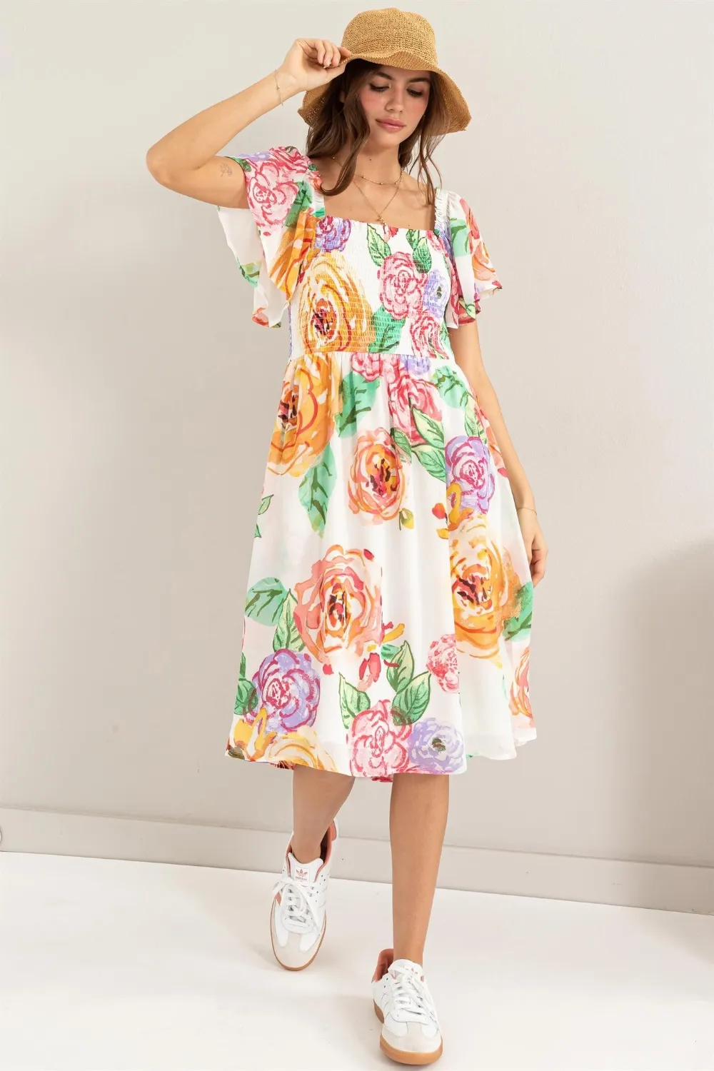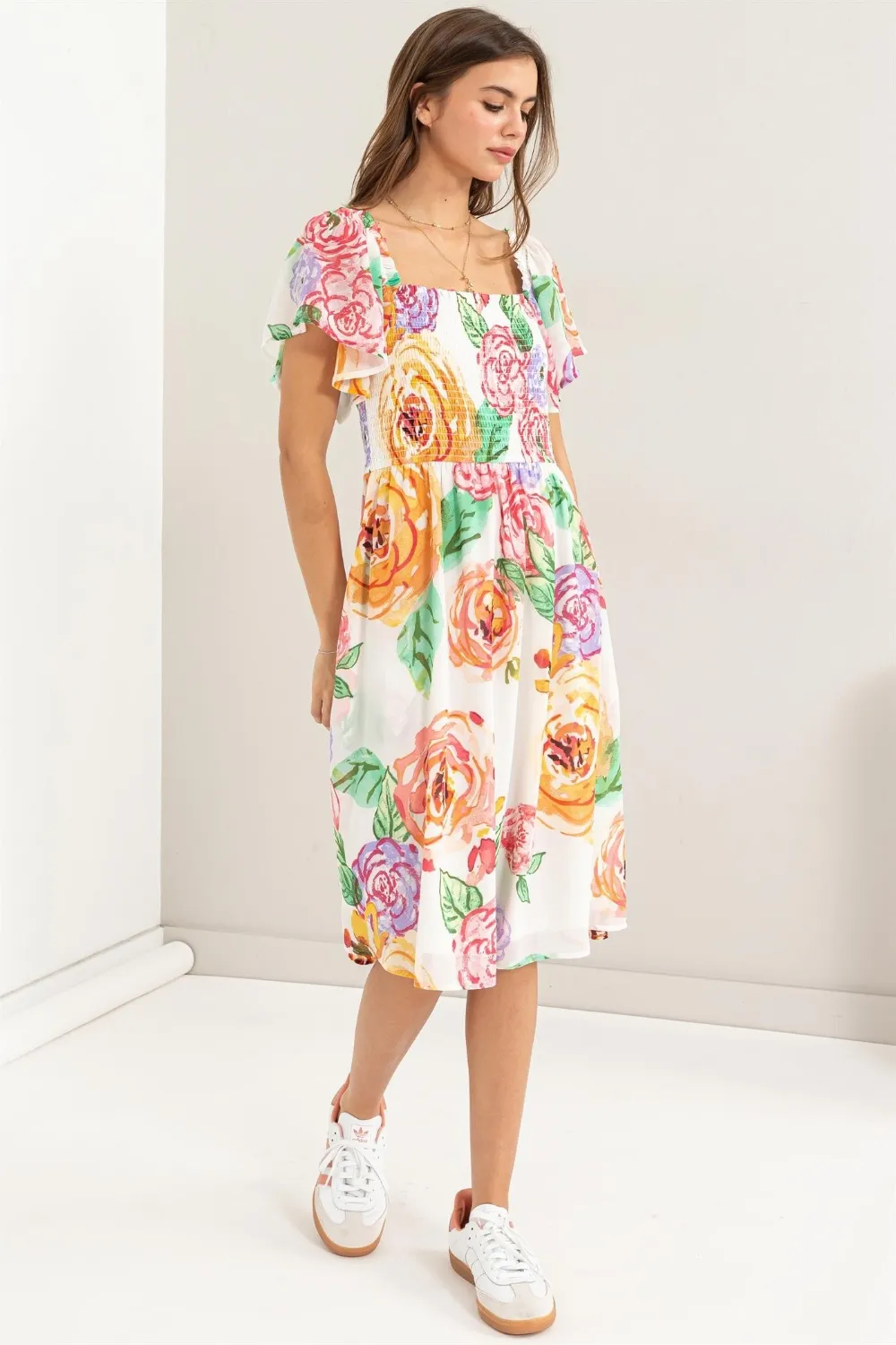 The Floral Flutter Sleeve Smocked Dress is a romantic and feminine choice for any occasion. Featuring delicate floral patterns and flutter sleeves, this dress exudes soft and graceful charm. The smocked waistline creates a flattering silhouette while providing comfort and flexibility. Perfect for a casual day out or a special event, this dress offers versatility and style. Pair it with heels for a dressier look or sandals for a more relaxed vibe. Embrace your romantic side with this lovely floral dress that is sure to turn heads wherever you go.