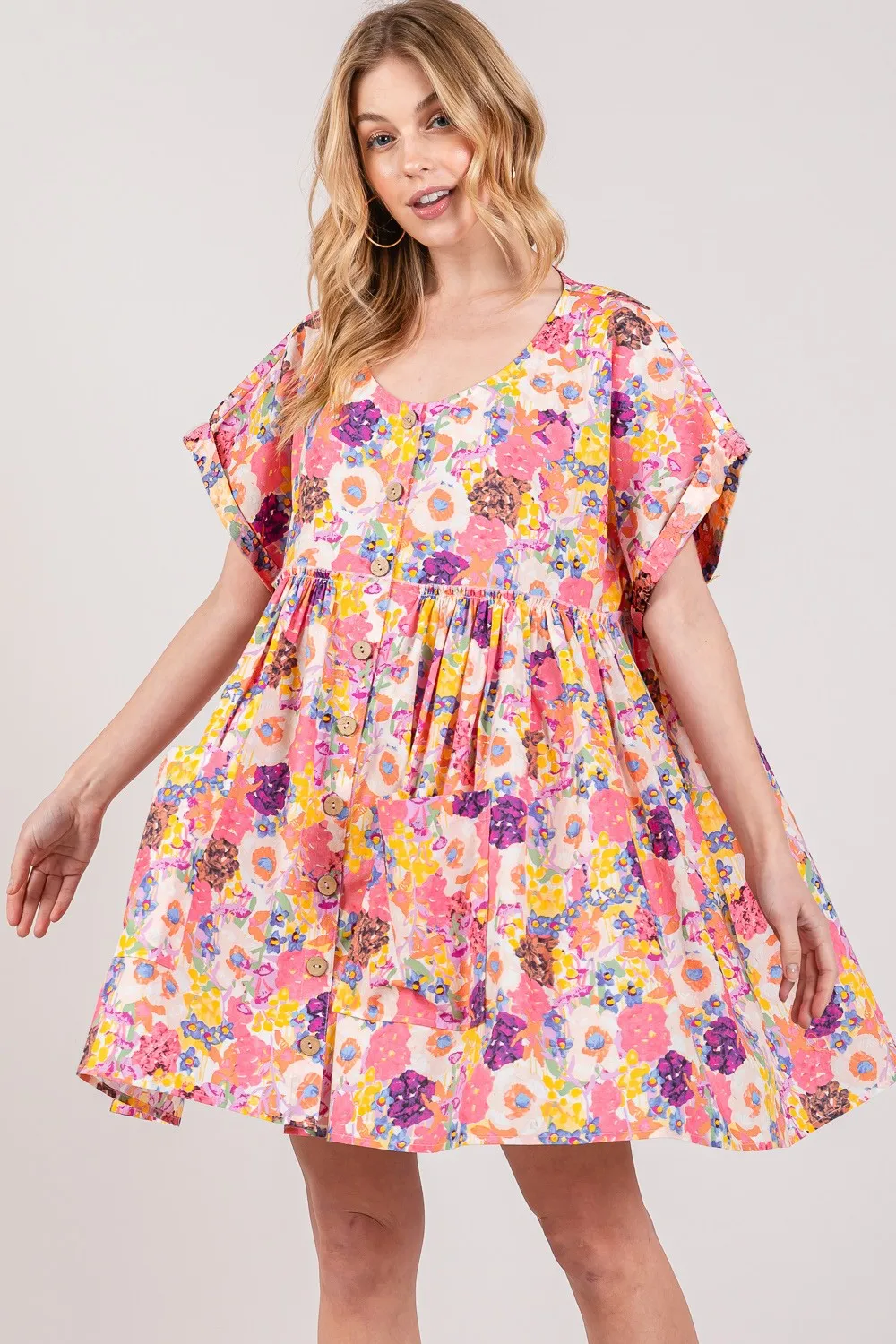Floral Short Sleeve Babydoll Dress with Pockets – Multi