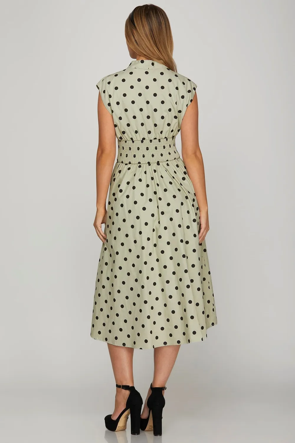 Front Zip Polka Dots Cap Sleeve Midi Dress – Sage