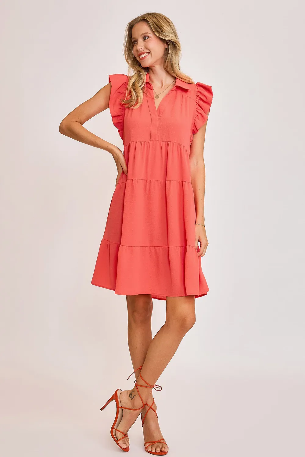 Full Size Johnny Collar Ruffle Cap Sleeve Tiered Dress Plus Size – Strawberry