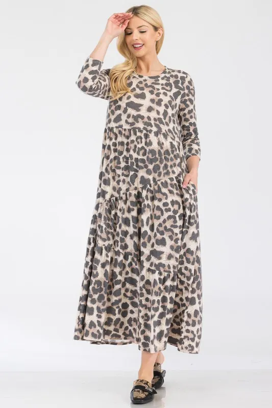 Full Size Leopard Print Asymmetric Tiered Midi-Dress Plus Size – Leopard