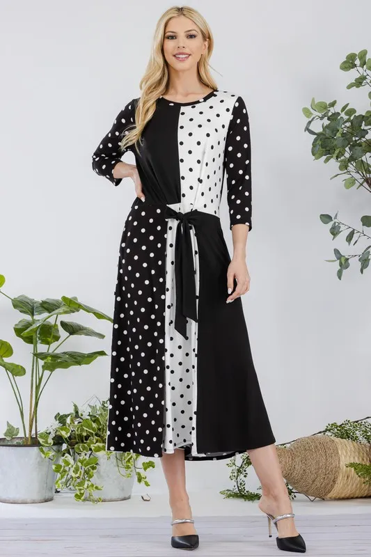 Full Size Polka Dot Front Tie Midi Dress Plus Size – Black