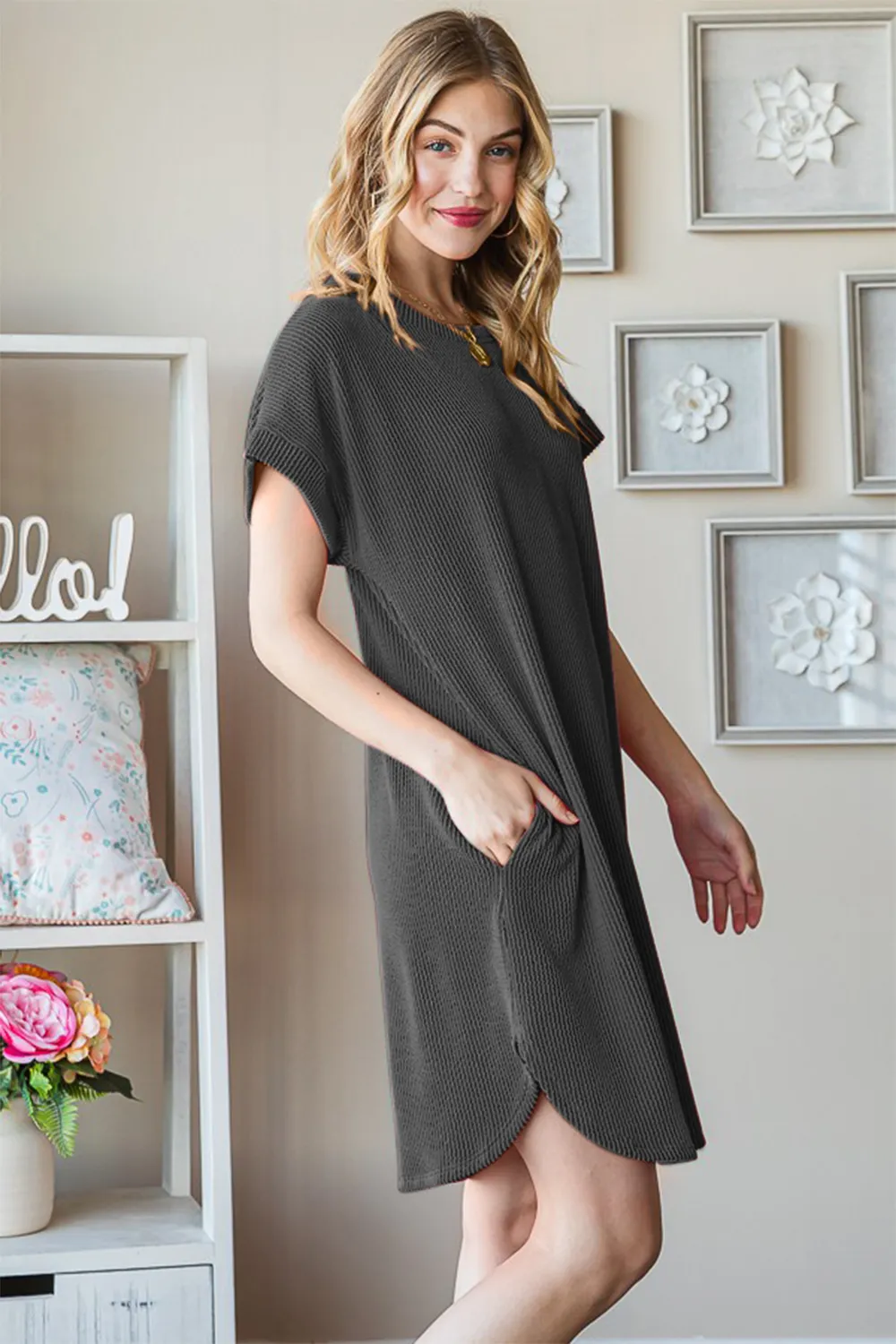 Full Size Ribbed Round Neck Short Sleeve Tee Dress – Charcoal