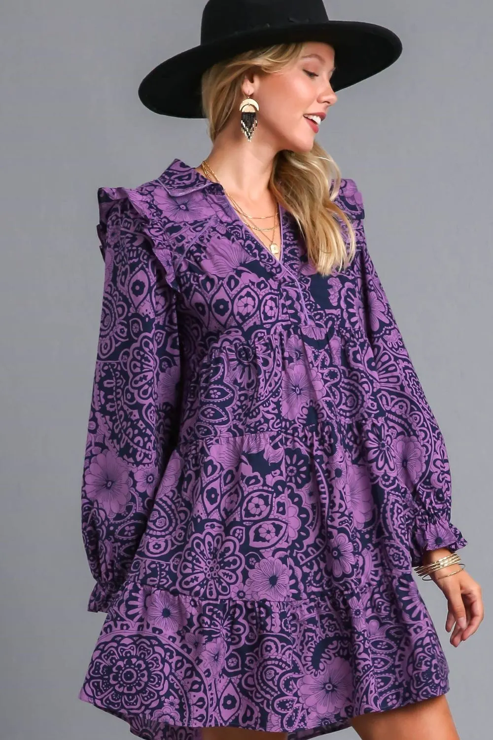 The Ruffled Printed Piping Detail Long Sleeve Dress is a chic and feminine ensemble that combines playful ruffles with sophisticated piping details. The printed pattern adds a touch of charm and character to the dress, making it a standout piece in your wardrobe. Perfect for both casual outings and special occasions, this dress can be dressed up with heels and statement jewelry or dressed down with flats for a more relaxed look.