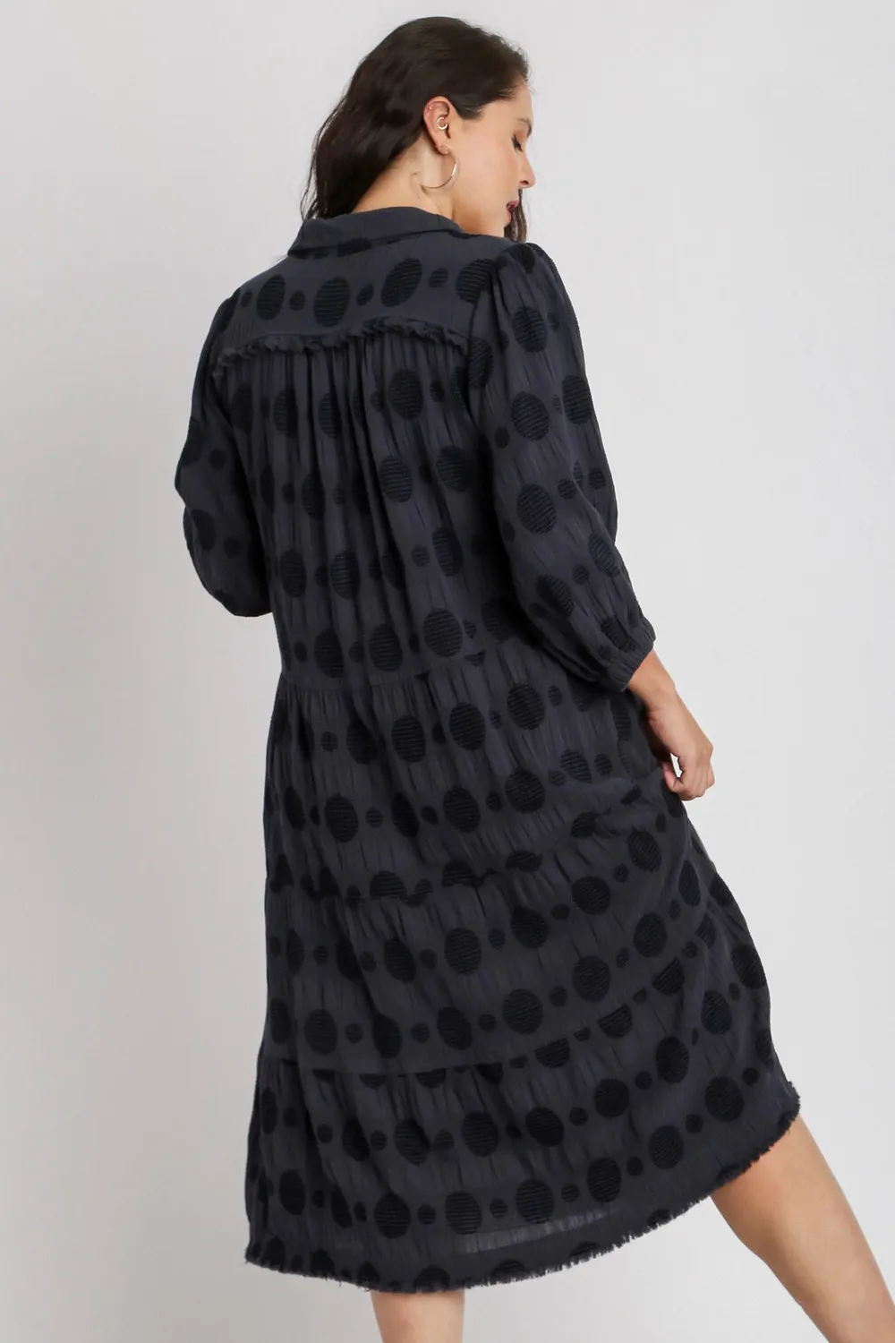 Full Size Solid Dotted Jacquard Midi Dress Plus Size – Dark Navy