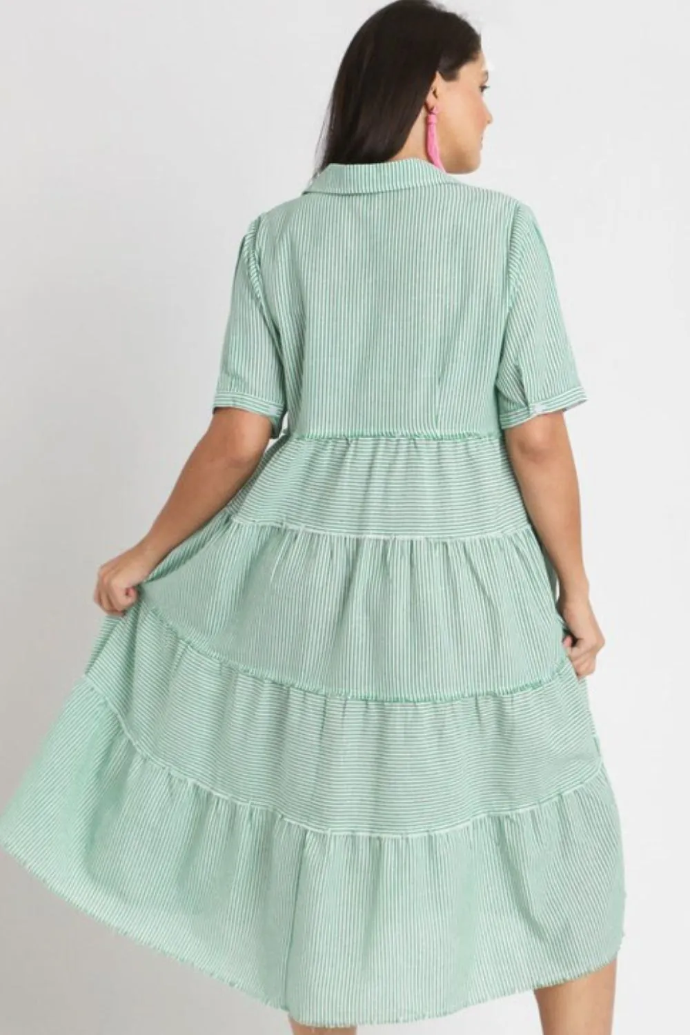Full Size Stripe Tiered A-Line Midi Dress Plus Size – Gum Leaf