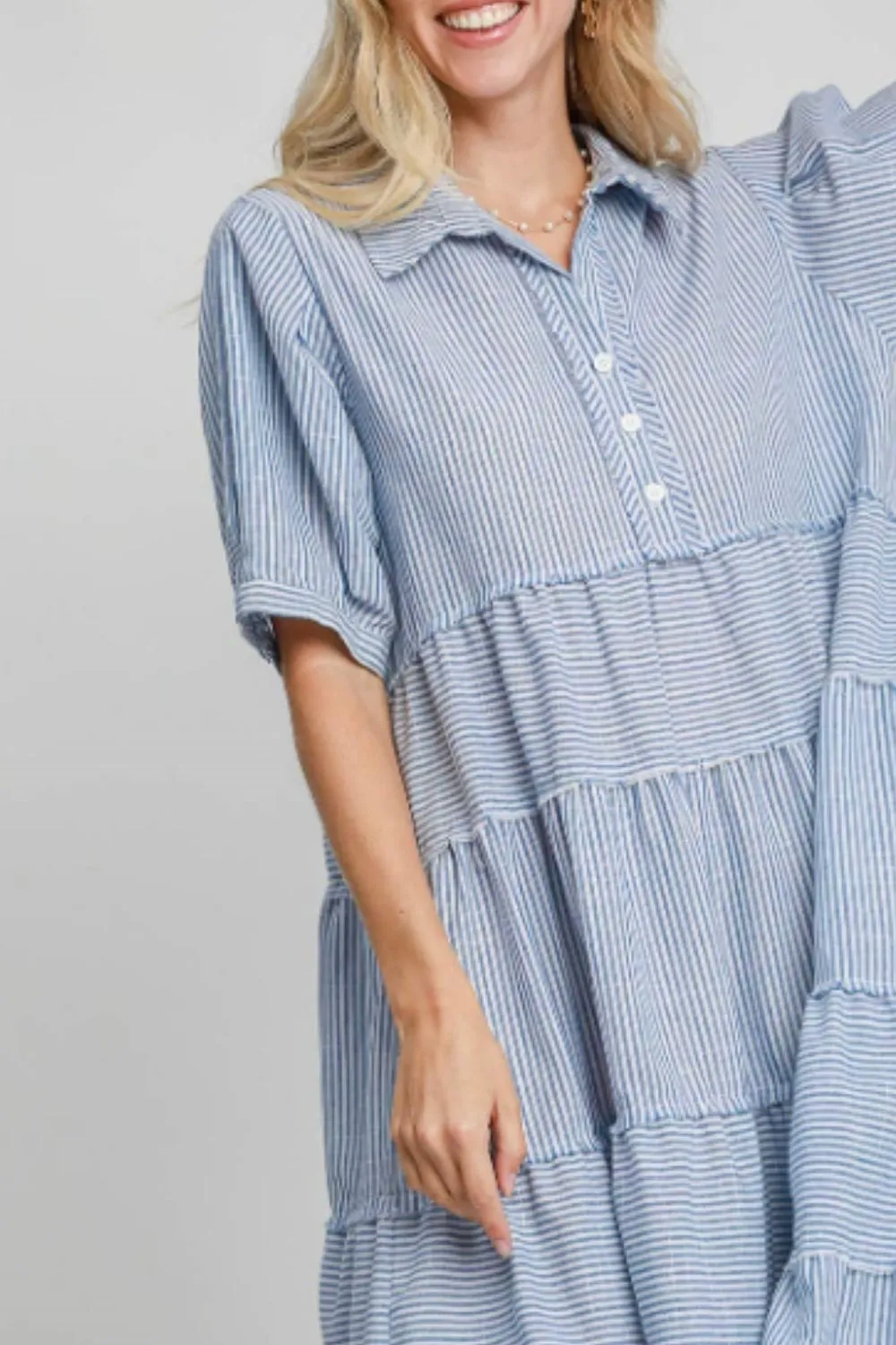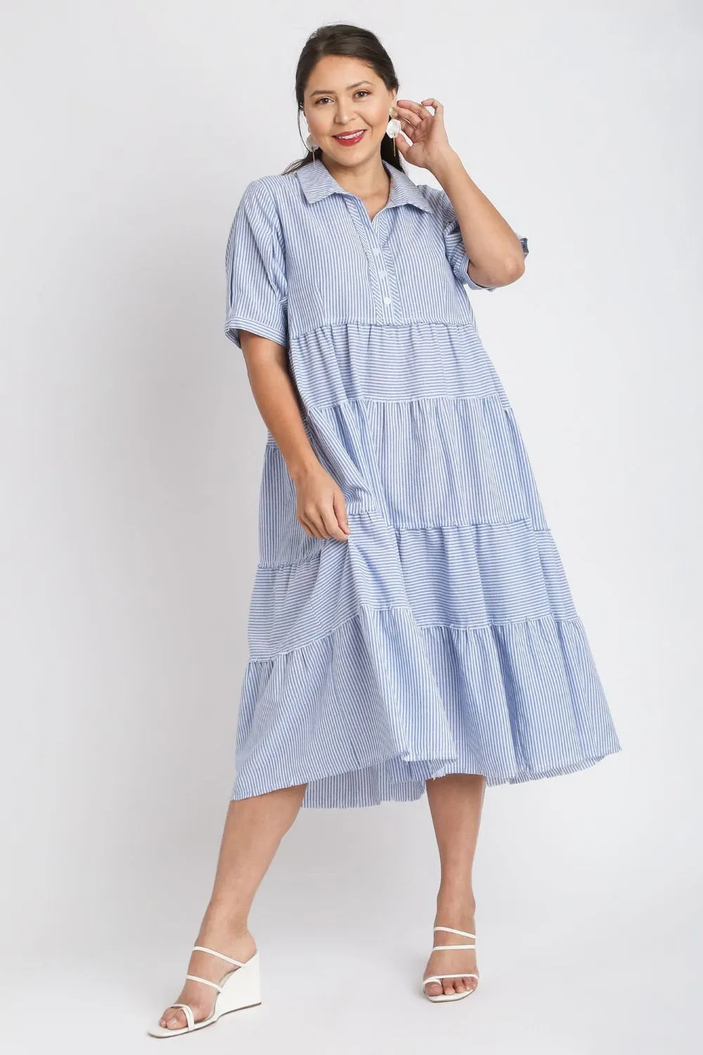Full Size Stripe Tiered A-Line Midi Dress Plus Size – Light Blue