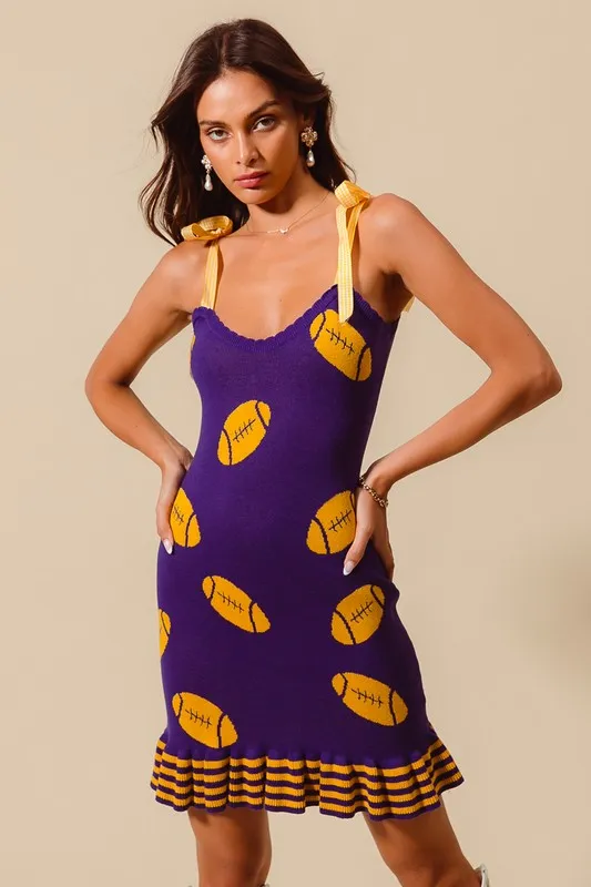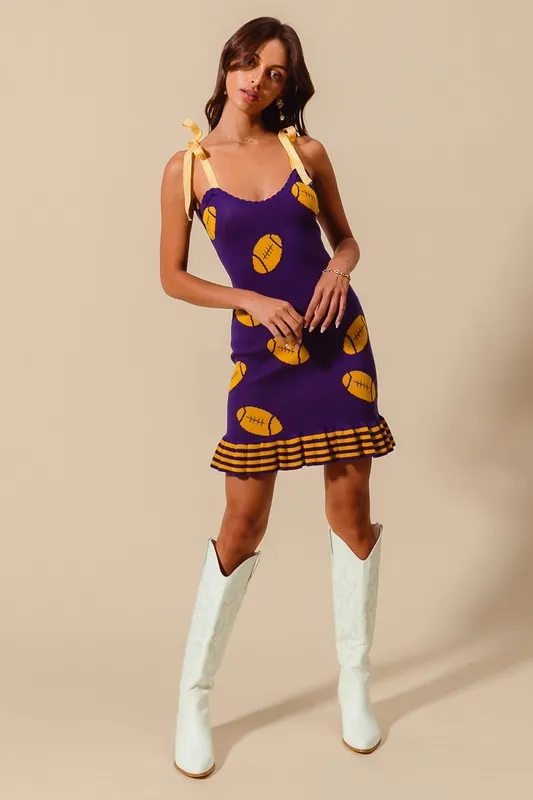 Gameday Football Knitted Mini Dress – Purple/Gold