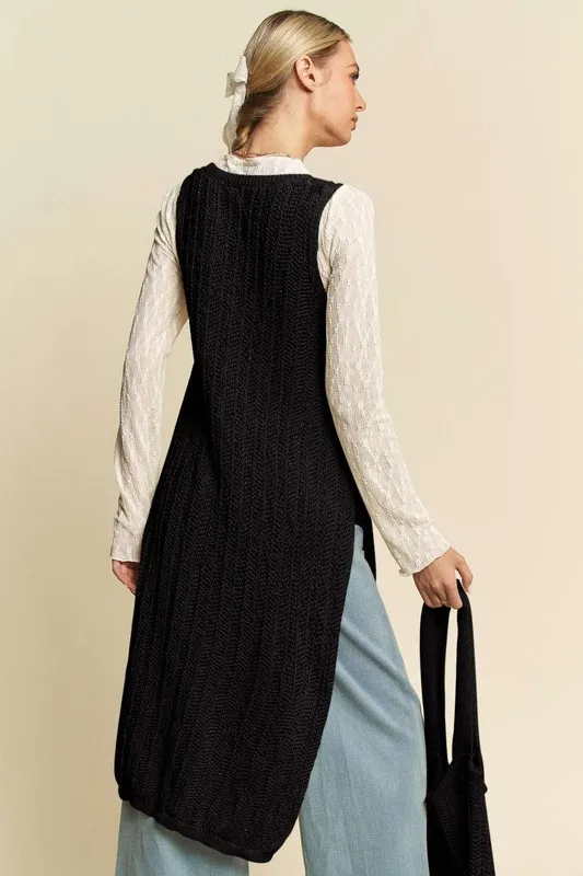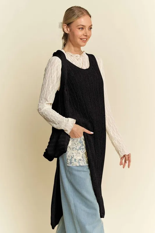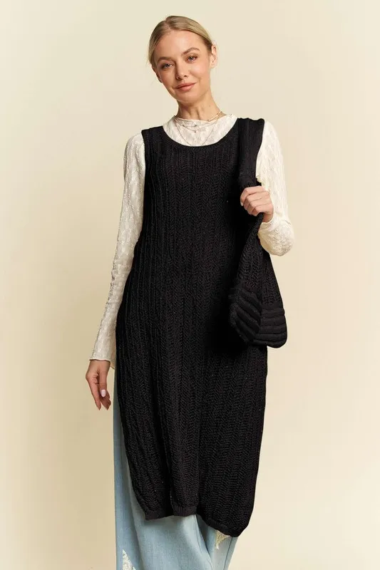 Knit Side Slit Round Neck Sleeveless Dress & Bag – Black