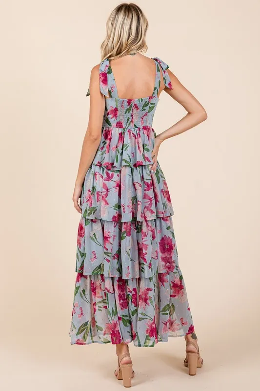 Layered Floral Sweetheart Neck Maxi Dress – Dusty Blue