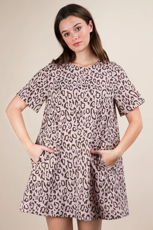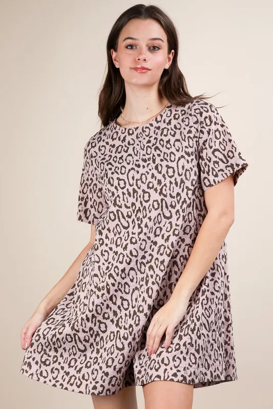 Leopard Printed Comfy Mini Dress – Blush