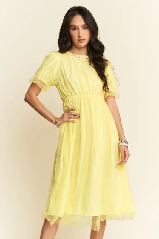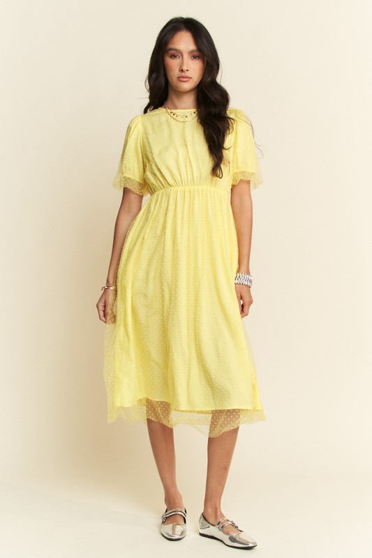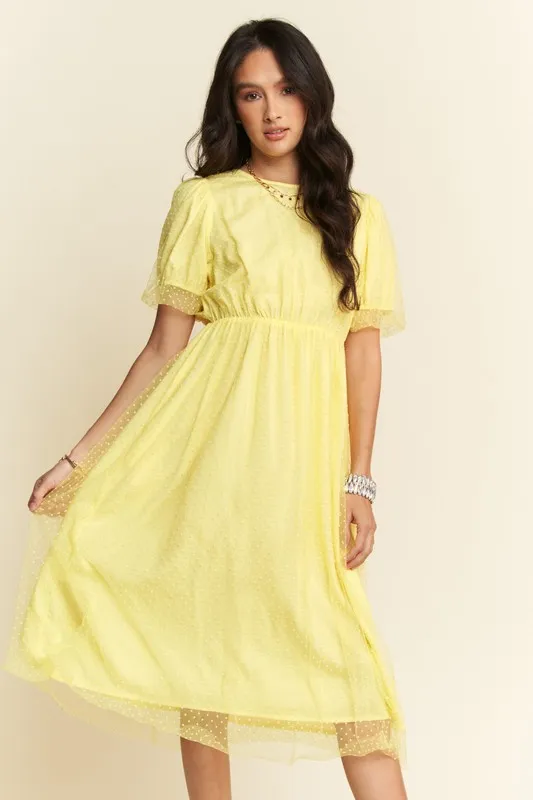 Mesh Puff Short Sleeve Midi Dress – Yellow