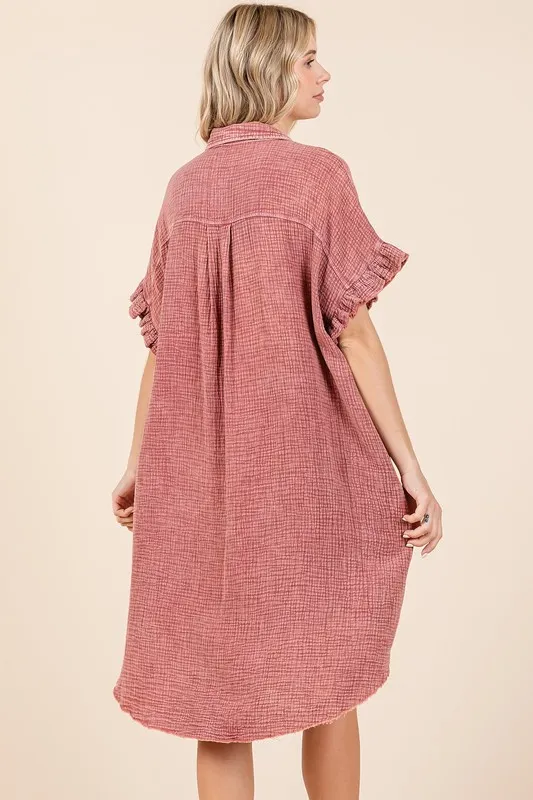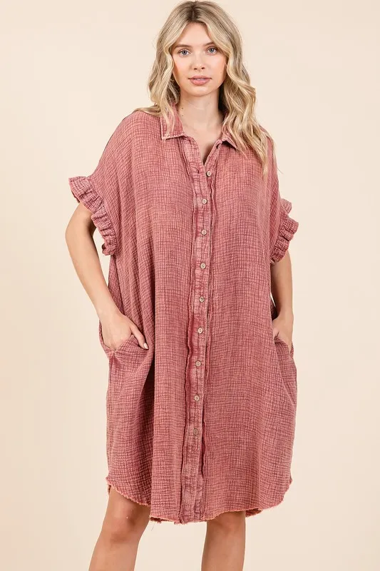 Mineral Wash Cotton Gauze Mini Shirt Dress – Rust