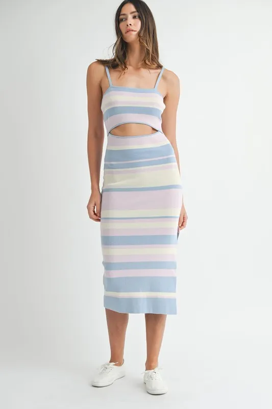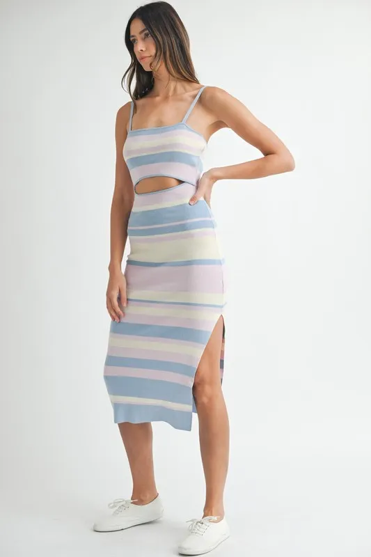 Multi Color Striped Front Cutout Knit Midi Dress – Lt Blue Multi