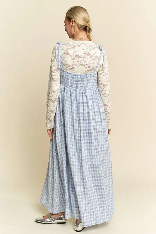 Plaid Smocking Sleeveless Maxi Dress – Blue