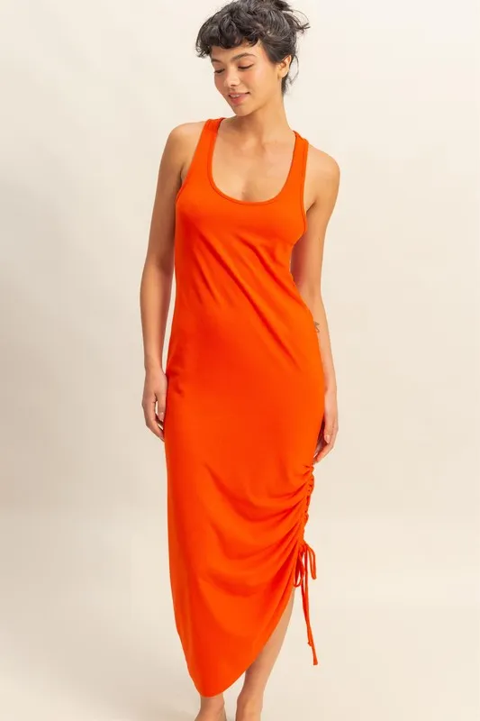 This adjustable drawstring dress features front ruching for a flattering and customizable fit. The ruched detailing adds texture and dimension to the dress, while the adjustable drawstring allows you to cinch the waist to your desired level of comfort and style. This versatile design creates a feminine and figure-enhancing silhouette that can be easily adjusted to suit your preferences. Made with high-quality fabric, this dress offers both comfort and a fashion-forward look. Elevate your wardrobe with this chic and versatile dress that effortlessly combines ruched detailing with adjustable features for a stylish and flattering ensemble.