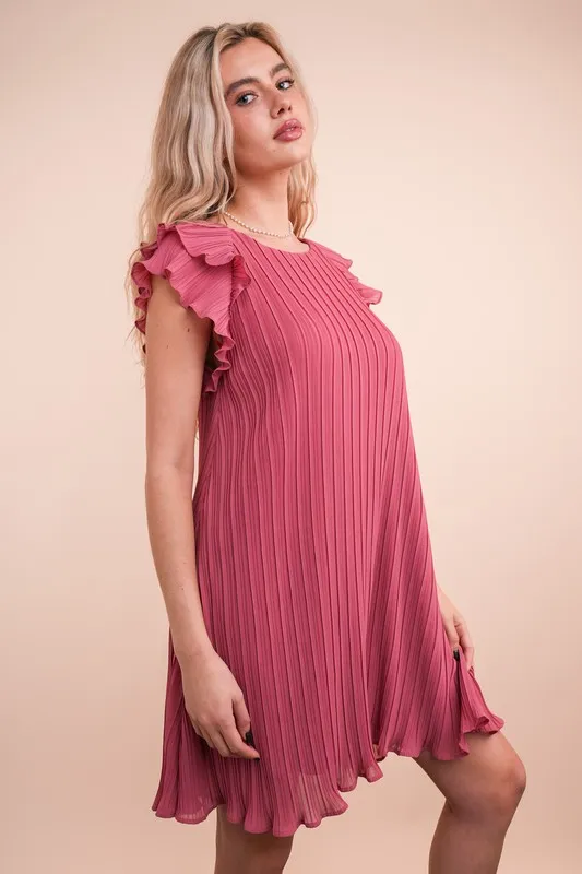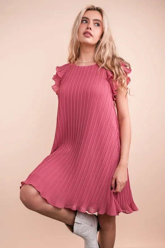 Plus Size Ruffle Sleeve Pleated Woven Mini Dress – Mauve