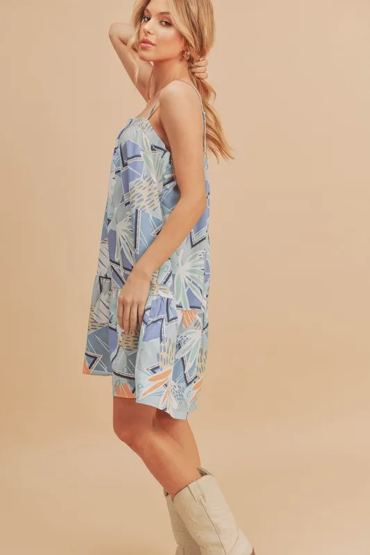 Printed Ruffled Hem Square Neck Mini Cami Dress – Light Blue