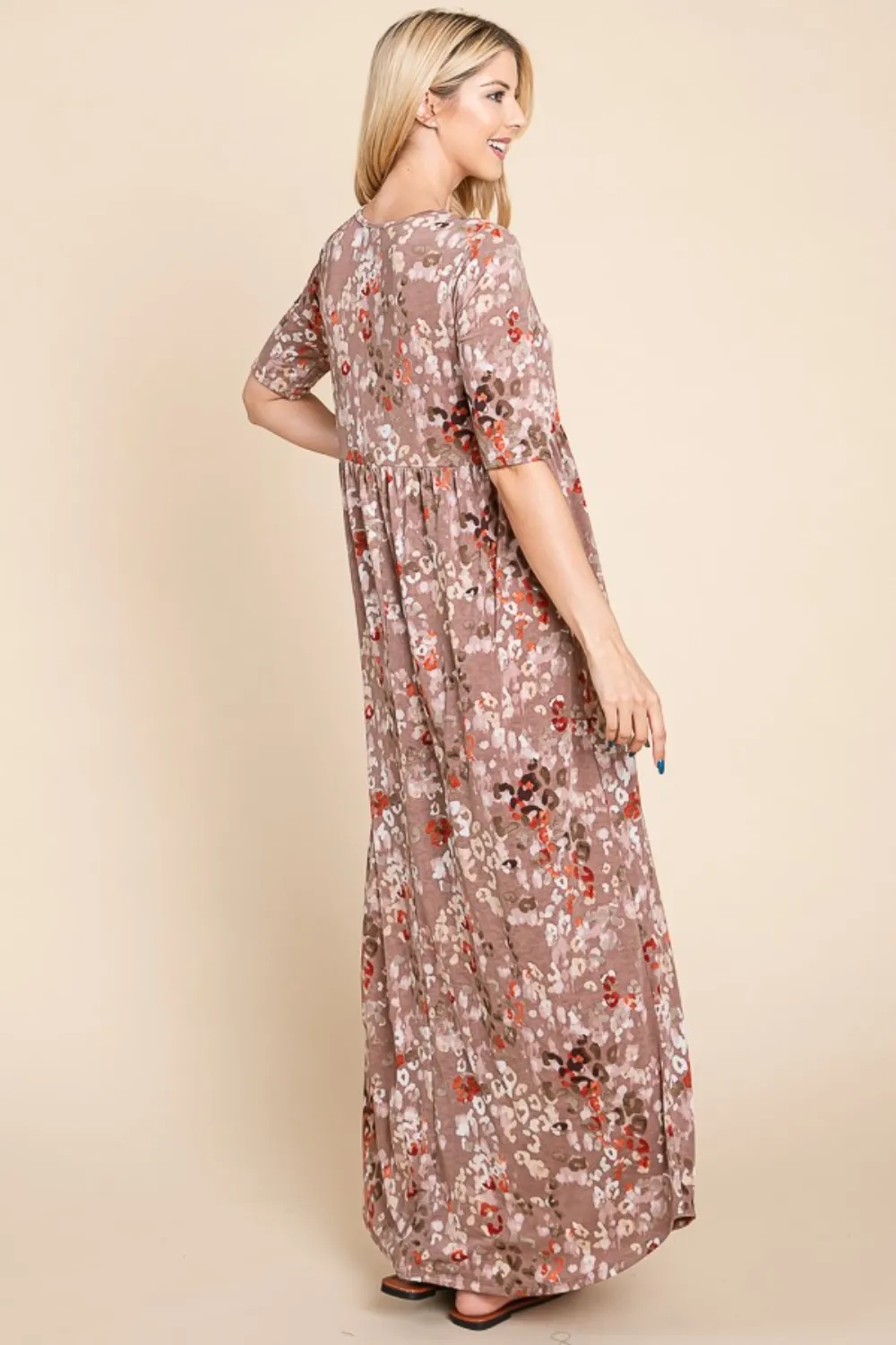 Printed Shirred Maxi Dress – Mocha
