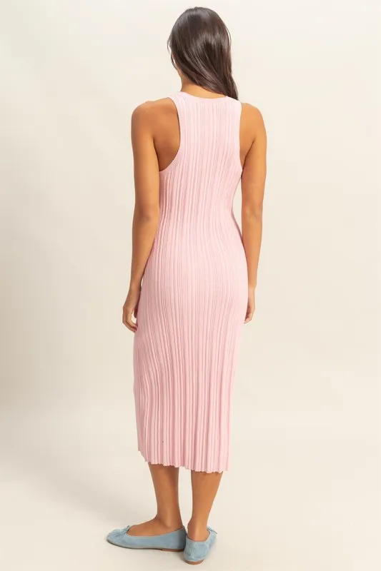 Round Neck Bodycon Ribbed Knit Dress – Soft Pink