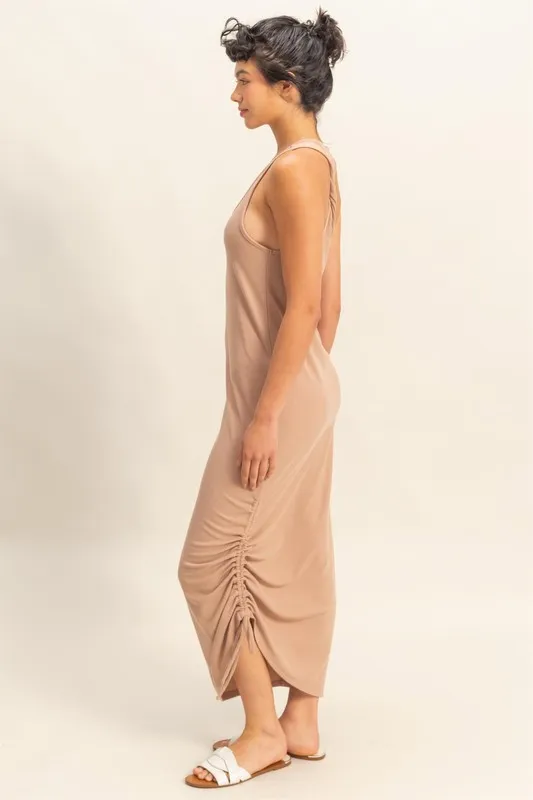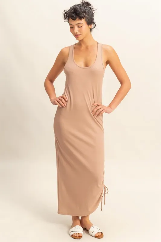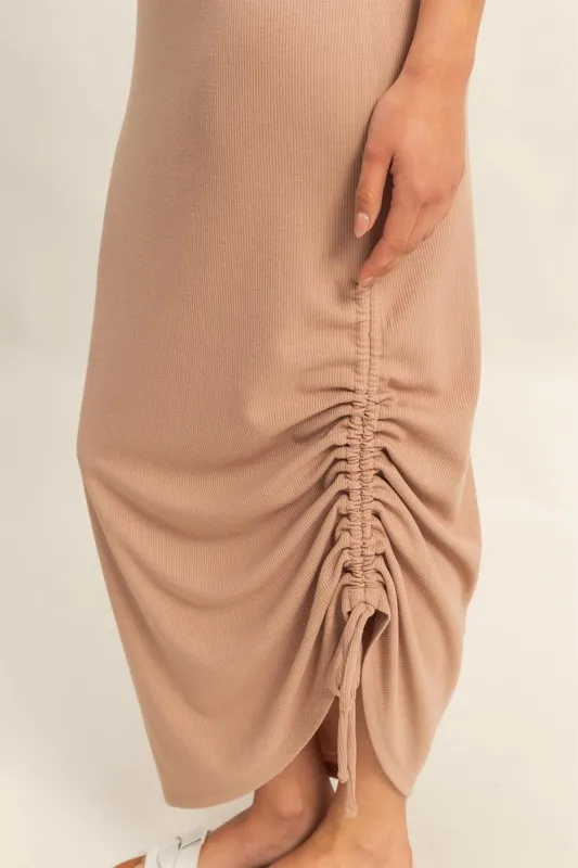 Scoop Neck Side Tie Detail Midi Dress – Dark Taupe