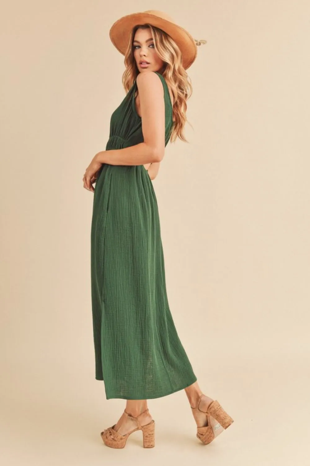 Side Slit Round Neck Sleeveless Tank Dress – Dark Green