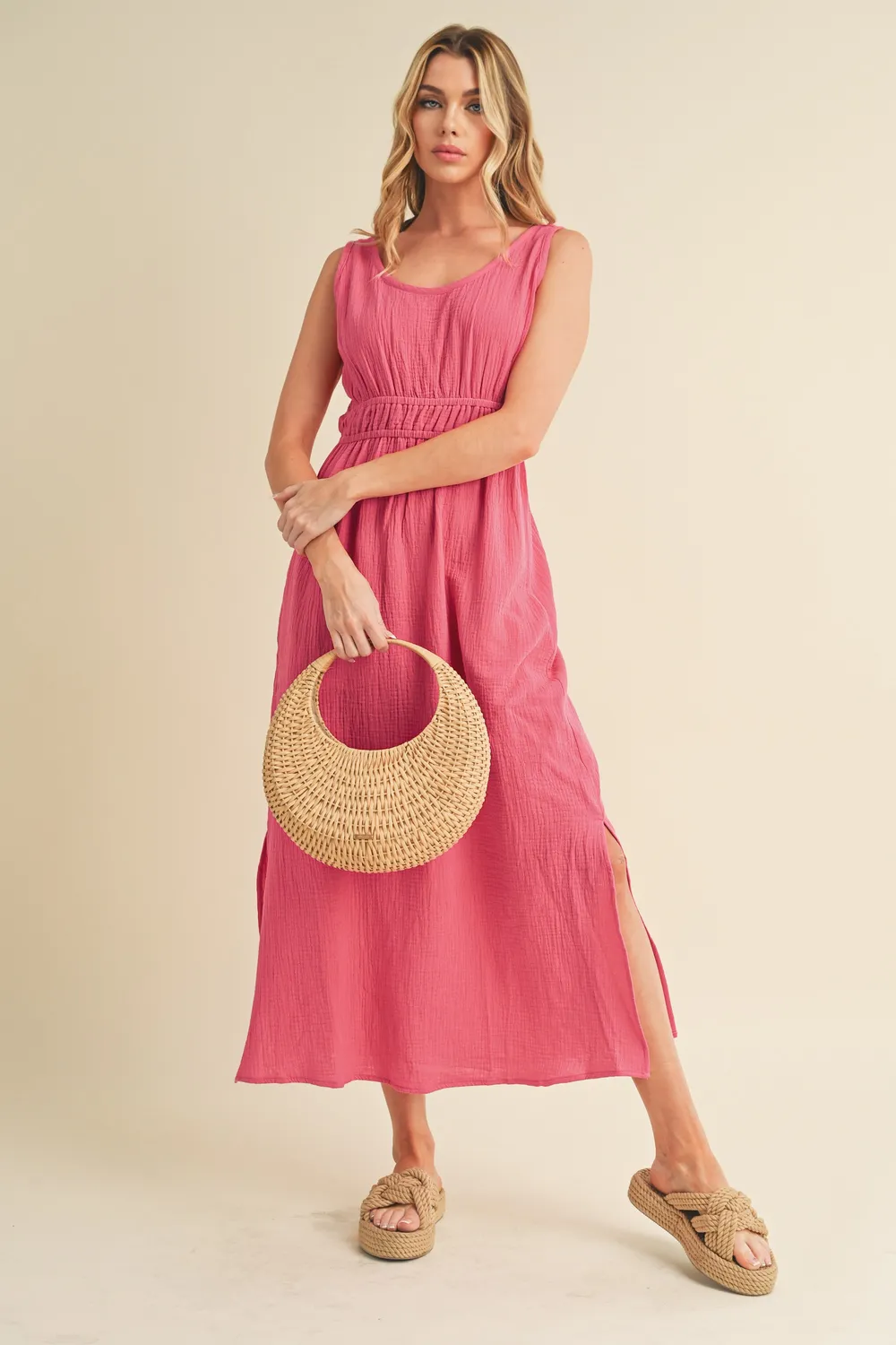 Side Slit Round Neck Sleeveless Tank Dress – Hot Pink