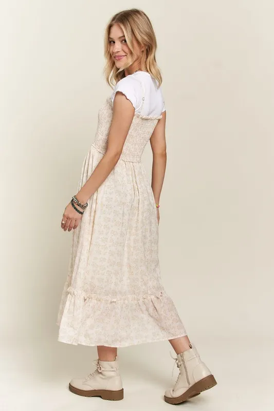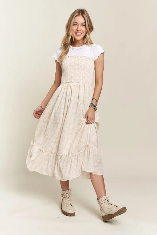 Smocked Floral Ruffled Hem Cami Dress – Apricot