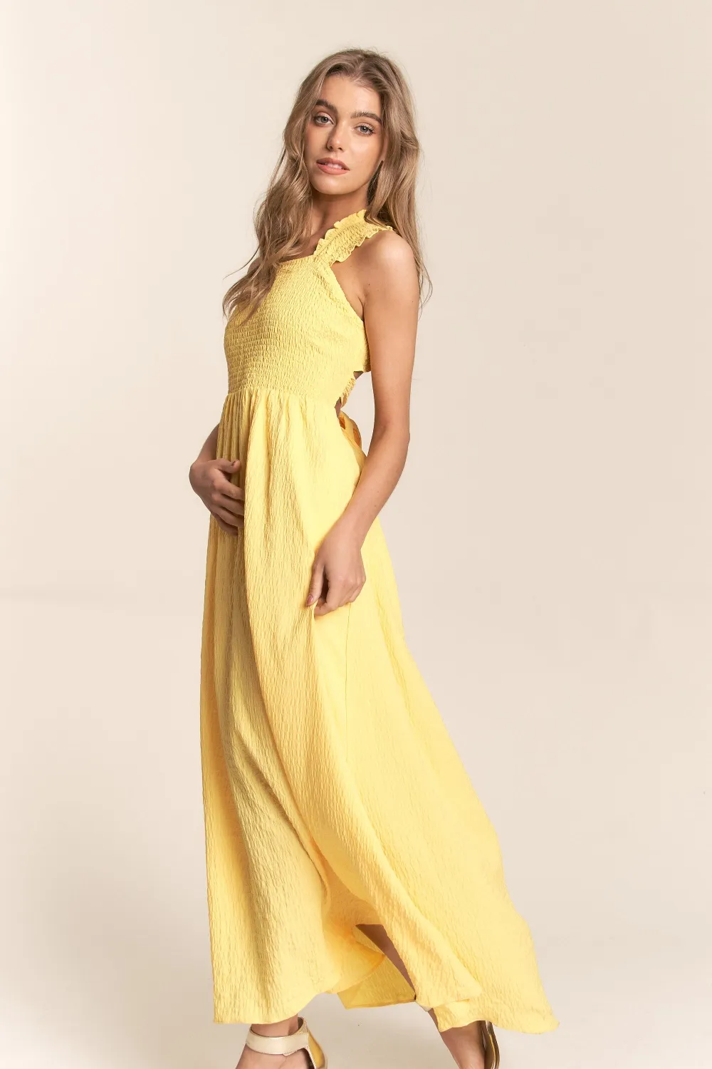 Texture Crisscross Back Tie Smocked Maxi Dress – Banana