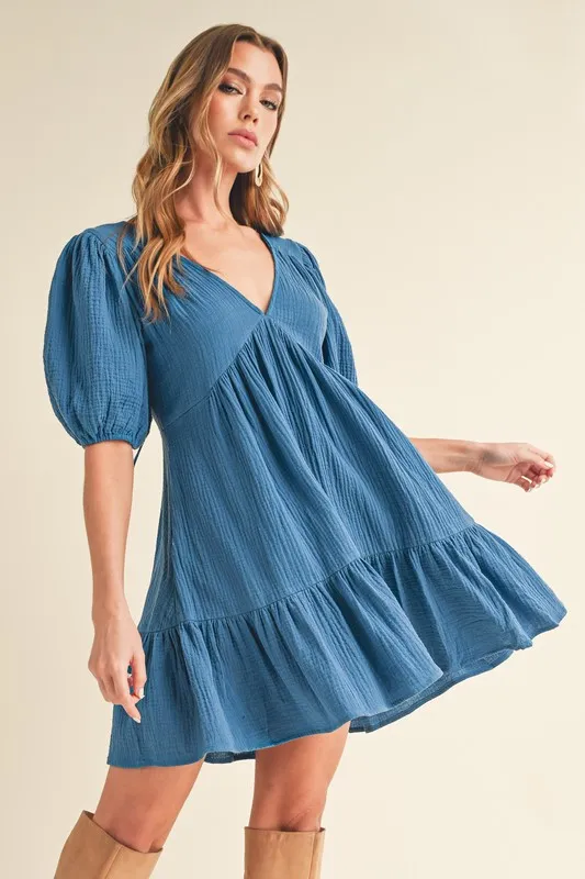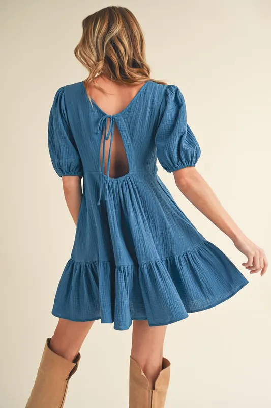 Tied Back Ruffled Short Sleeve Mini Dress – Azure